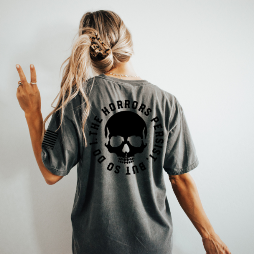 This graphic hoodie keeps the same dark, gritty vibe and color scheme—bold, clean, and unapologetically resilient.
