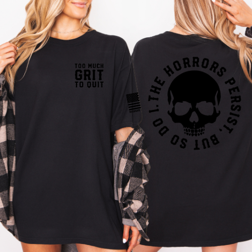 This minimalist graphic sweatshirt features a black-on-black (or black on pepper) print in a clean gothic font—quiet enough to style with anything, loud enough to say exactly what you mean. It’s a battle cry for the days that try you, the seasons that stretch you, and the moments you refuse to let win.